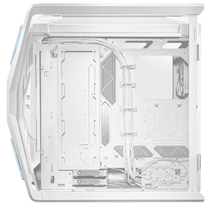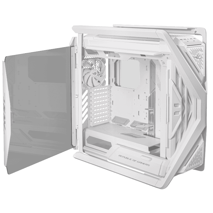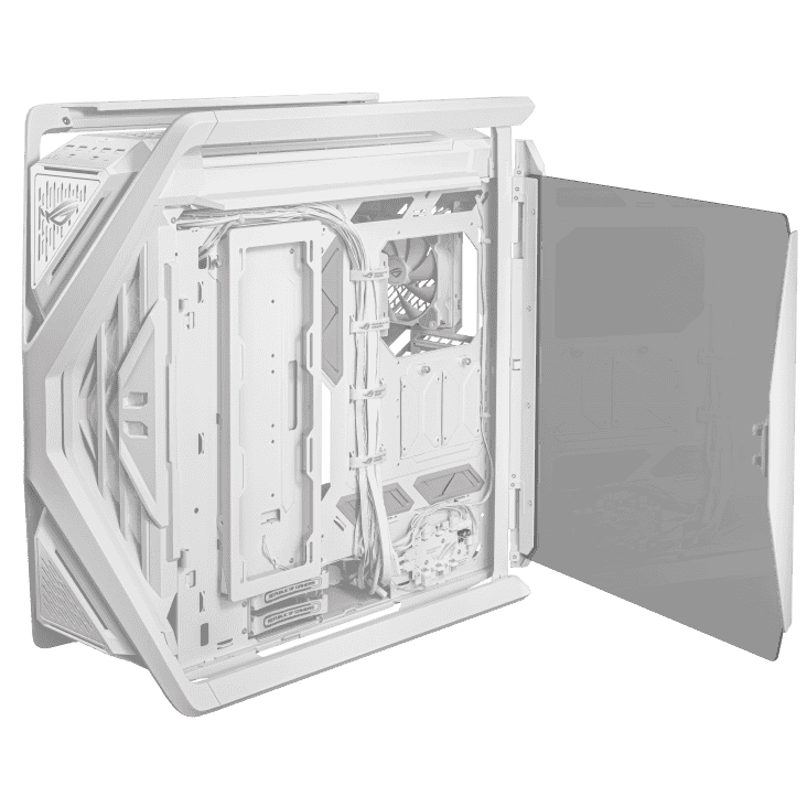 The GR701 ROG Hyperion (White) is a cutting-edge full-tower gaming case designed for ultimate power and style. Featuring a durable aluminum frame, tempered glass panels, Aura Sync RGB lighting, and extensive cooling options for custom loops or air setups, it supports EATX motherboards and provides ample space for extreme, high-performance gaming builds with a sleek white finish.