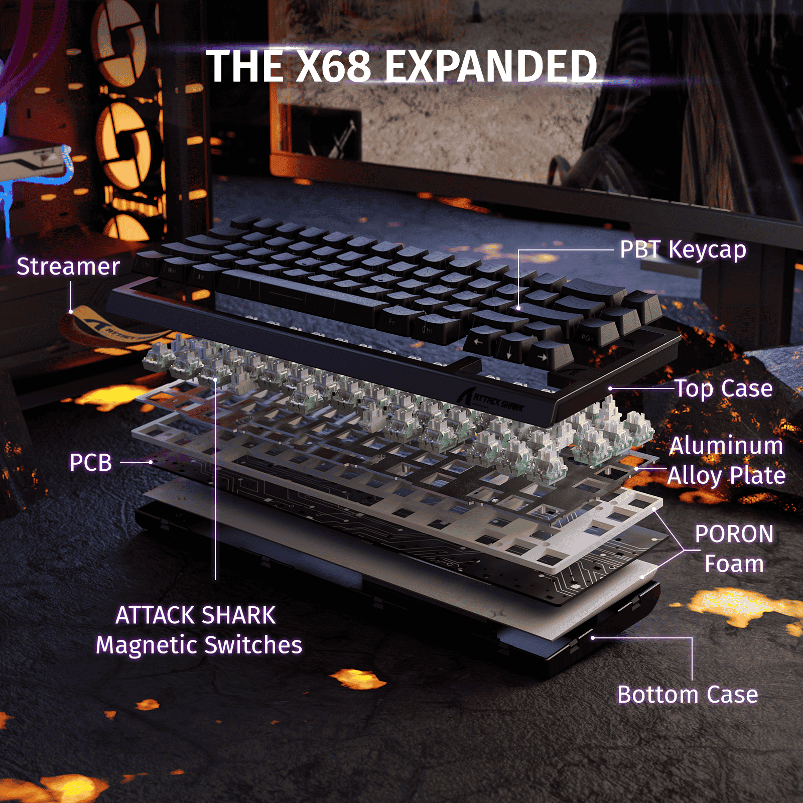Every keystroke is registered with precision thanks to adjustable actuation points from 0.1mm to 3.4mm. Whether you want hair-trigger response or deliberate typing control, the X68 HE lets you tune each key to your style with 0.01mm sensitivity.