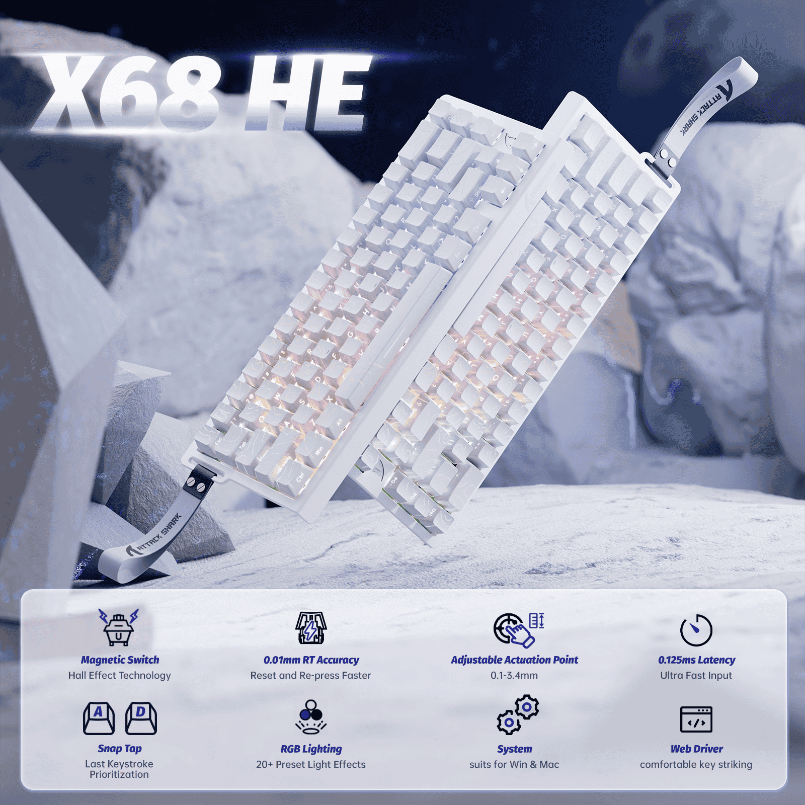The ATTACK SHARK X68 HE is a revolutionary 60% wired gaming keyboard equipped with magnetic linear switches, delivering ultra-fast actuation and full per-key customization. Built for speed, control, and versatility, it gives you an edge in high-stakes gameplay.