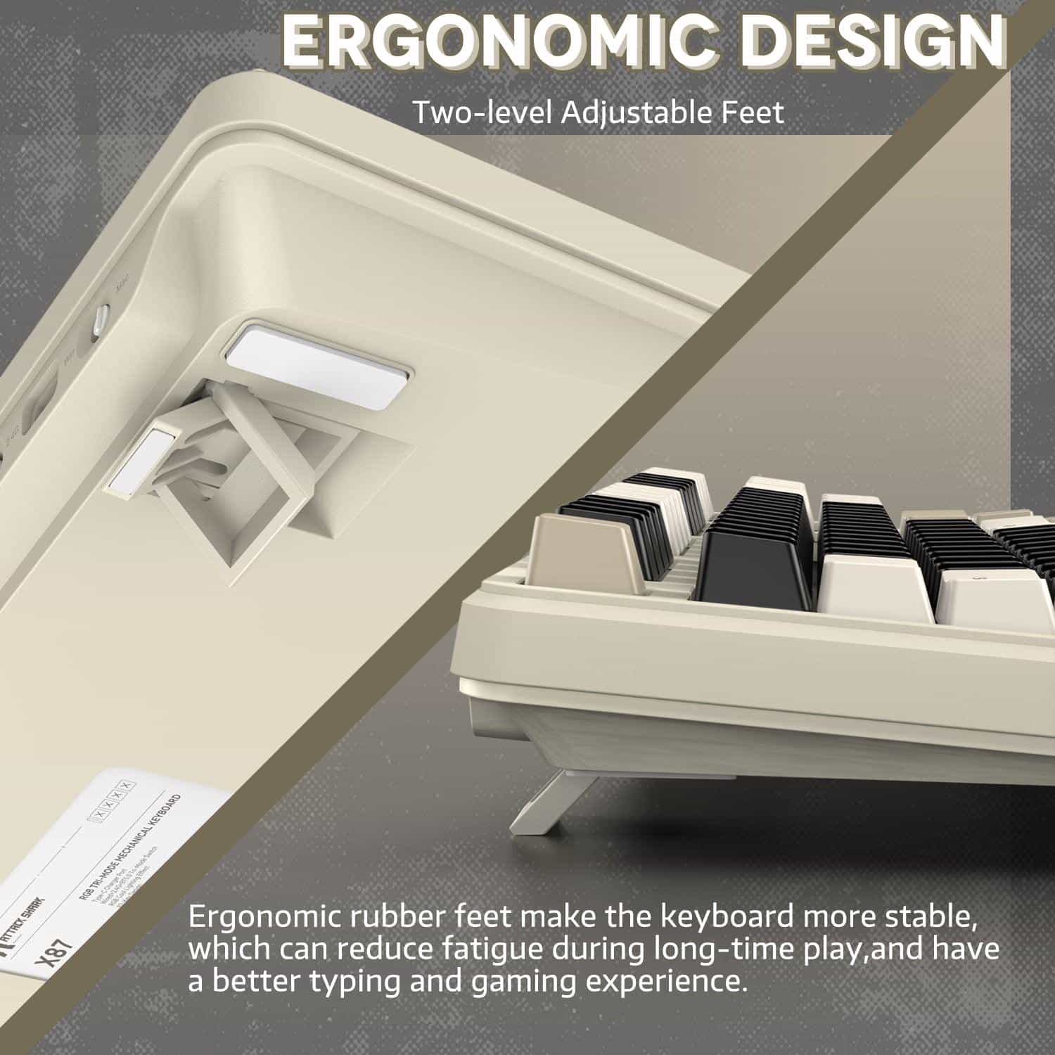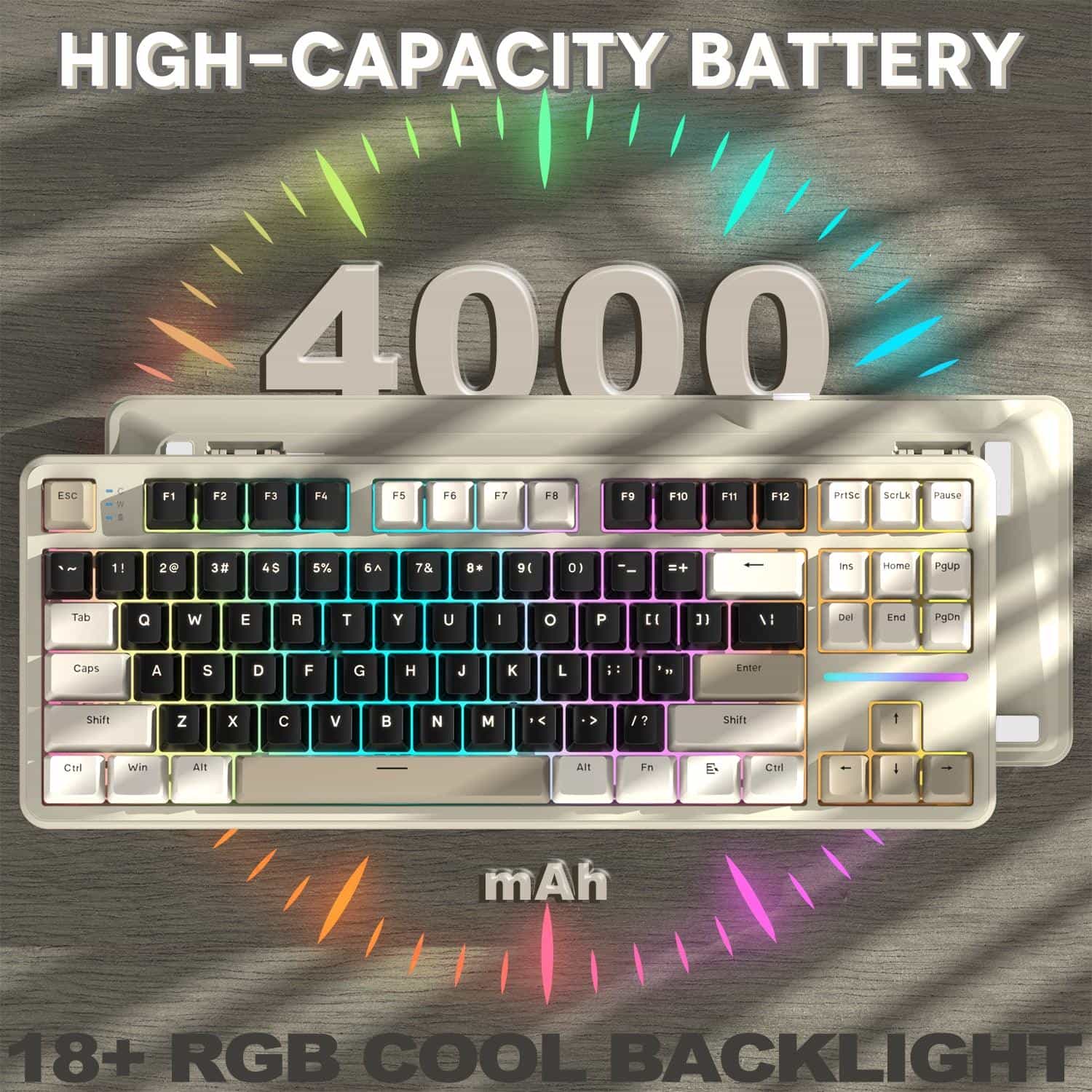 The OEM-profile PBT keycaps and adjustable rear stand provide optimal typing posture, even during extended gaming or work. With its 4000mAh battery and smart power-saving features, the X87 keeps up with your longest sessions on a single charge.