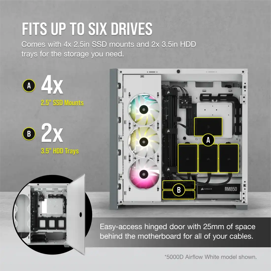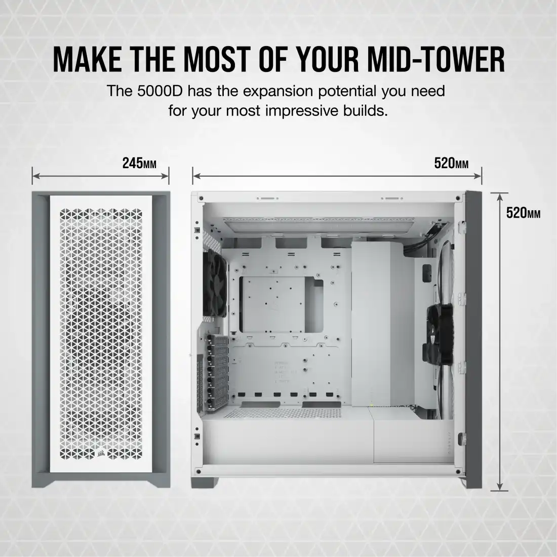 Corsair 5000D Airflow Black & White Mid-Tower ATX PC Case with Pre-Installed Corsair Fans – Exclusive Paras Tech Edition