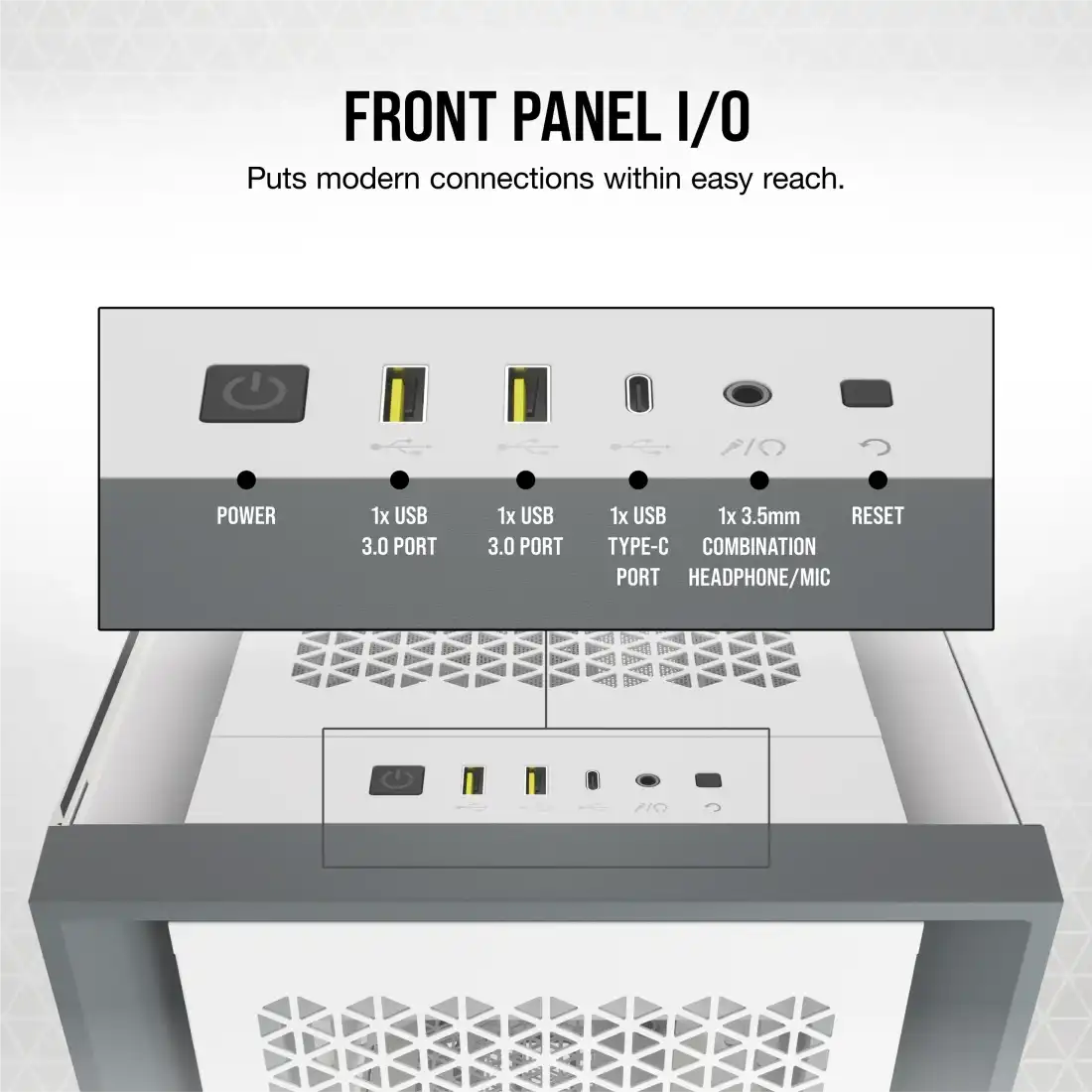 • Modern Front I/O Panel: Puts your connections within easy reach, including a USB 3.1 Type-C Port, 2x USB 3.0 ports, and a combination audio/microphone jack.