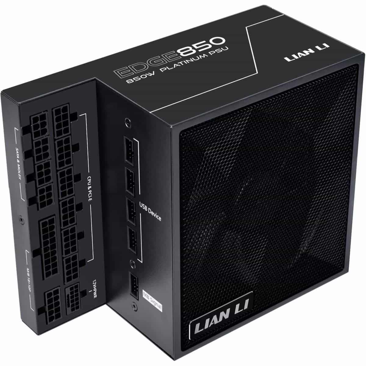 The Lian Li Edge 850W Full Modular 80+ Platinum Power Supply delivers next-gen performance with ATX 3.1 and PCIE 5.1 support, dual chamber L-shaped design, USB connectivity, and a 120mm FDB silent fan for premium gaming and creator builds.