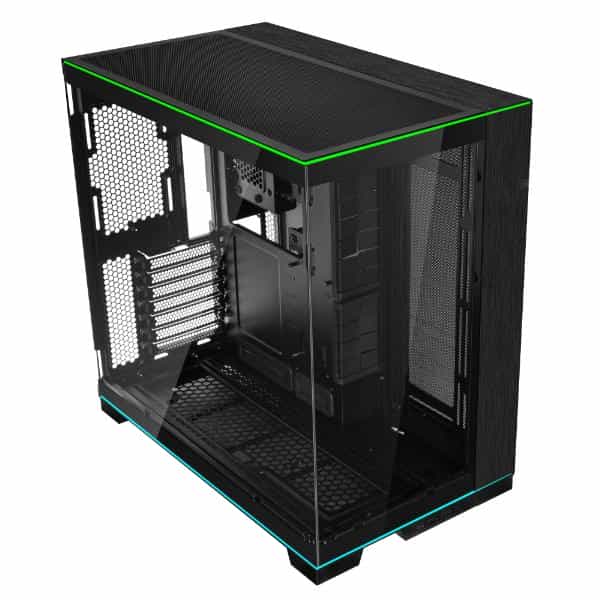 Cable management is effortless thanks to additional space in the second chamber, keeping your build clean and organized. For gamers and creators looking for customization, optional accessories allow for vertical GPU or upright GPU mounting, giving your rig a unique and professional look.