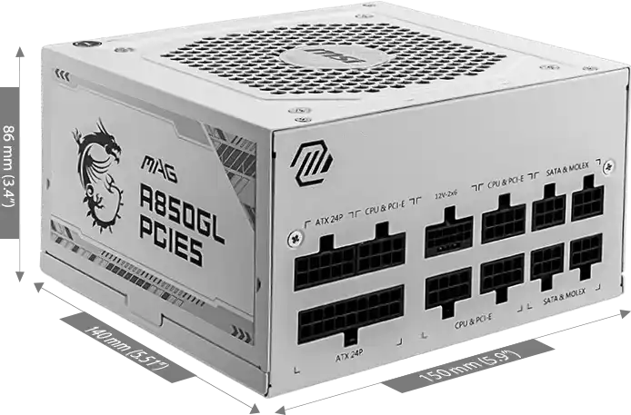 The MSI MAG A850GL PCIe 5 (WHITE) is a high-performance power supply unit designed for modern gaming PCs and workstations. Built to support the latest graphics cards and CPUs, it ensures maximum stability, efficiency, and durability.